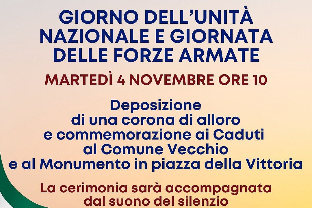 Deposizione di una corona di alloro e commemorazione ai Caduti al Comune Vecchio e al Monumento in piazza della Vittoria.