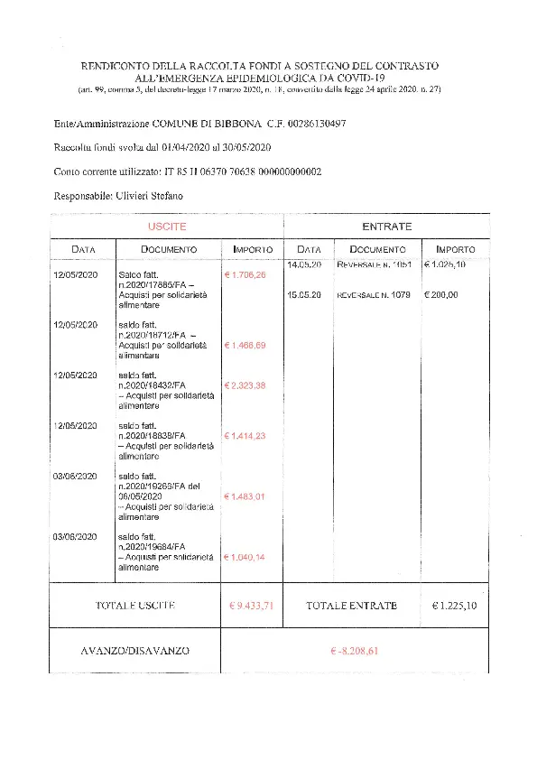 Rendicontazione erogazioni Covid-19