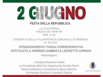 Il programma della cerimonia del 2 Giugno. Posizionamento della targa commemorativa intitolata a Amerigo Gabbani e Leonetto Cipriani